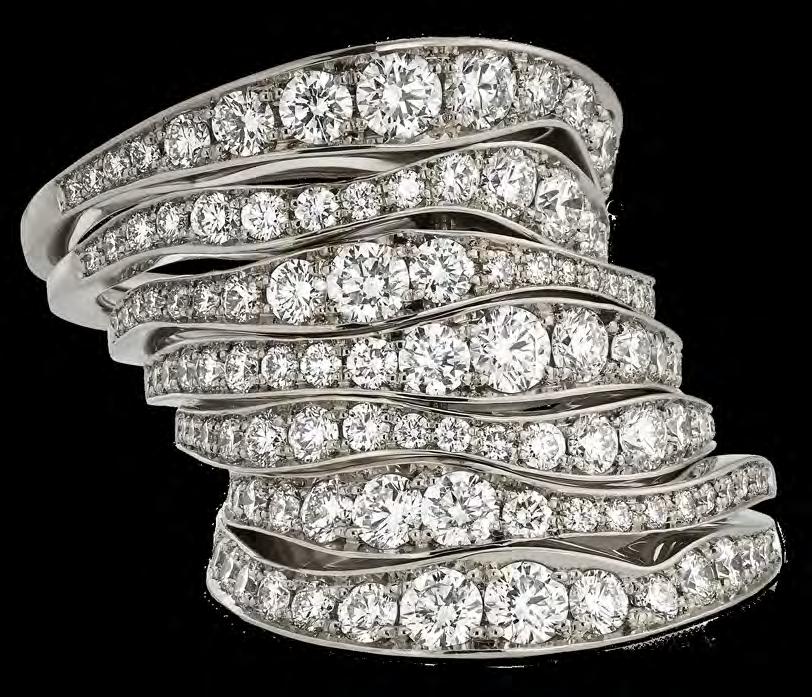 The Twisted collection is comprised of bangles, rings, necklaces, pendants for earrings and hoops, made of either gold or white gold, set with sparkling diamonds.