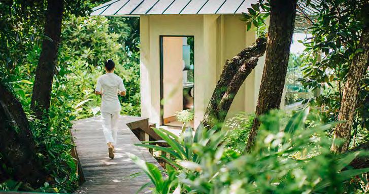 Selv hotellets spaområde er bygget slik at den enkelte gjest kan finne seg selv og «connecte» med de naturlige omgivelsene. Med sine 1234 kvadratmeter er hotellets spaområde det største i Det indiske hav. De 12 autentiske spa-paviljongene skjuler seg blant de grønne trærne. Alle har utsikt til havet og er beriket med en åpen arkitektonisk struktur uten vegger som får det indre og det ytre til å smelte sammen. Vi velger en familiebehandling som gir barna muligheten til å prøve sin aller første massasje. Samtidig gir det meg og min mann en times fred og ro til fullstendig avkobling. Så mens barna tripper avsted i slippersene og badekåpene, blir vi voksne ledet en annen vei – alle med nesen mot våre egne spapaviljonger.