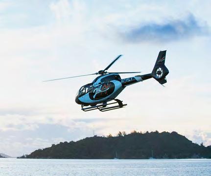 Det er akkurat stort nok til å ta fire passasjerer og våre to kofferter. Etter en 14 timers flytur er vi ganske slitne i kroppen, men vi har gledet oss til denne siste delen av reisen, så vi stiger ombord i helikopteret med fornyet energi. Piloten ønsker oss velkommen, melder klar til avgang, og snart forsvinner øya Mahé og den internasjonale flyplassen bak oss.