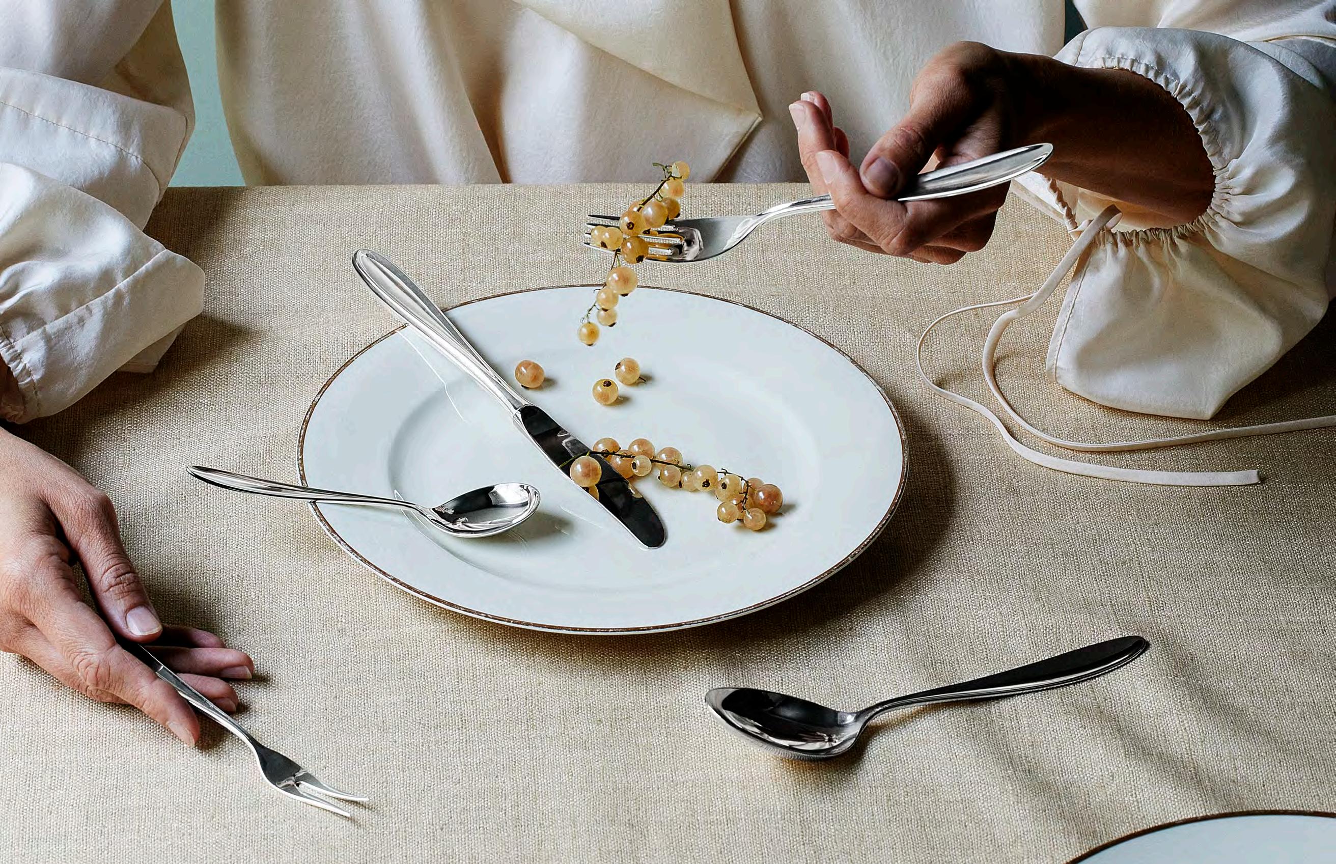 Nyt måltider med sølvbestikk som bevarer matens naturlige smak. Bestikket kan vaskes i oppvaskmaskinen.