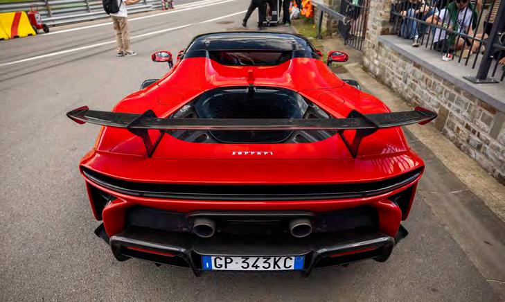 Det er ikke tilfeldig at vi er på billøp. Ferrari har alltid satset stort på racing. I Formel 1 og i WEC-løpene, der selskapets grunnlegger Enzo Ferrari nærmest bygde og solgte gatebiler for å skaffe penger til å drive sitt racerteam. Det var for å lage de raskeste racerbilene hjertet hans banket. Den sjelen eksisterer fortsatt hos Ferrari, og derfor har italie -