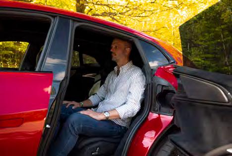 Jeg svinger inn på en parkeringsplass i Ardennene. Vi skal ta bilder til artikkelen. Det gir mulighet til å se bilen med andre øyne, så jeg åpner døren til baksetet. Eller baksetene, for det er to separate sportsseter som utgjør sitteplassene bak. Jeg setter meg inn, og med