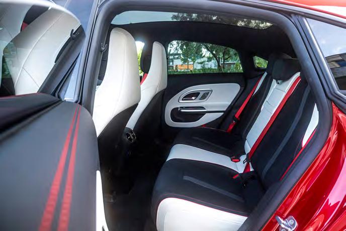 uavhengige elmotorene på hver aksel gir enda bedre mulighet for ’torque vectoring’, hvor kreftene kan fordeles individuelt til hvert hjul. Det gir i prinsippet både ekstra sikkerhet og moro, spesielt på glatt føre eller på svingete veier. Men på de svingete nord-sjællandske B-veiene føles den firehjulstrukkede versjonen faktisk mindre underholdende enn bakhjulsdrivere. Nåvel – den svinger skarpere inn i svingene og virker litt mer effektiv, men den lar seg ikke lokke til litt bakhjuls-løyer eller milde utglidninger. Det er naturligvis en smakssak, men CLA har allerede en svært fornuftig natur, og den blir ikke mindre fornuftig med firehjulsdrift. Ved normal kjøring merker man imidlertid ikke den store forskjellen mellom 250+ og 350 4Matic – unntatt når det kommer til forbruket. Det ender på cirka 15 kWh/100 km etter stort sett samme rute og veiforhold som dagen før. Det er omtrent 15 prosent høyere enn i 250+.