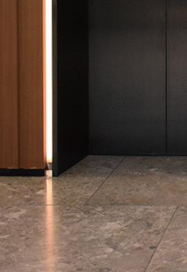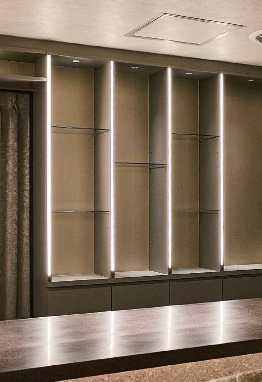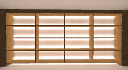 Luci RIMiT us の薄さを生かし、棚板を厚くすることなく、 光だけが浮かび上がるような意匠を実現しております。
