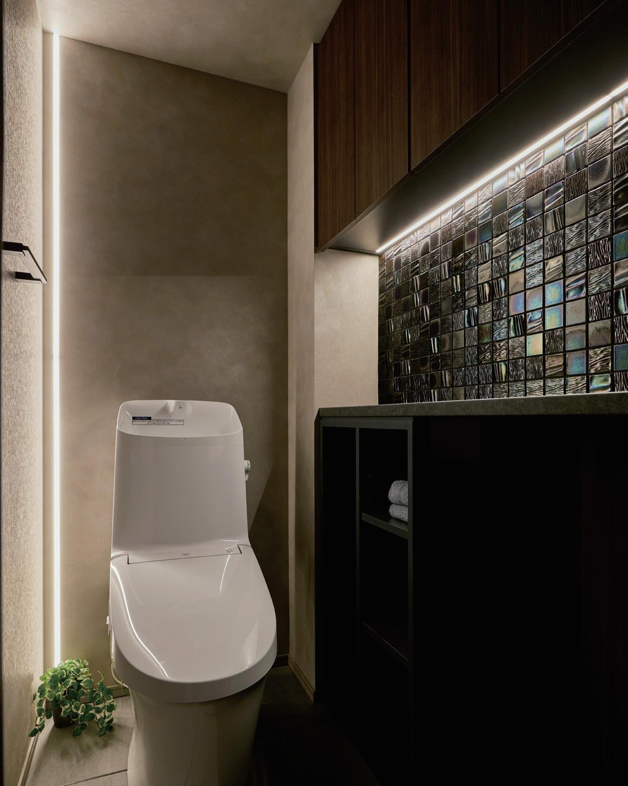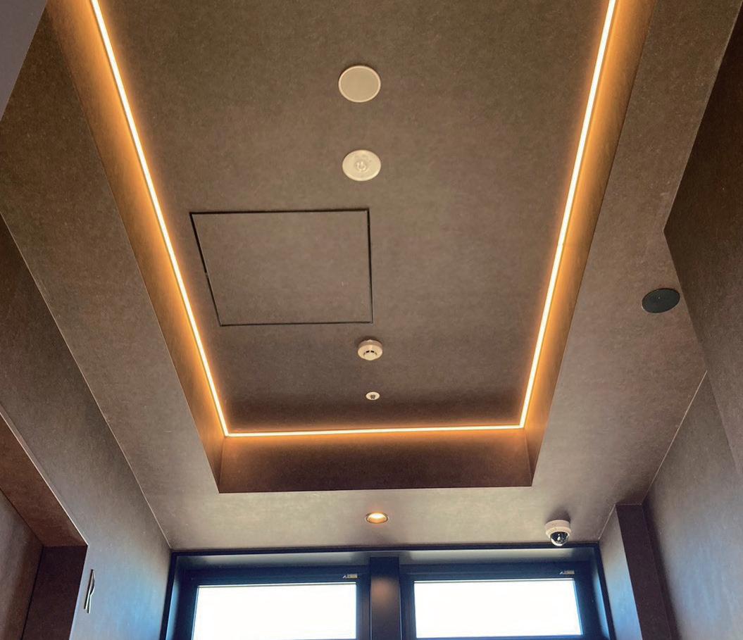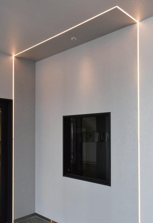 アッパーライトとダウンライトを組み合わせる意匠でも ドットレスでスマートな間接照明を実現しています。