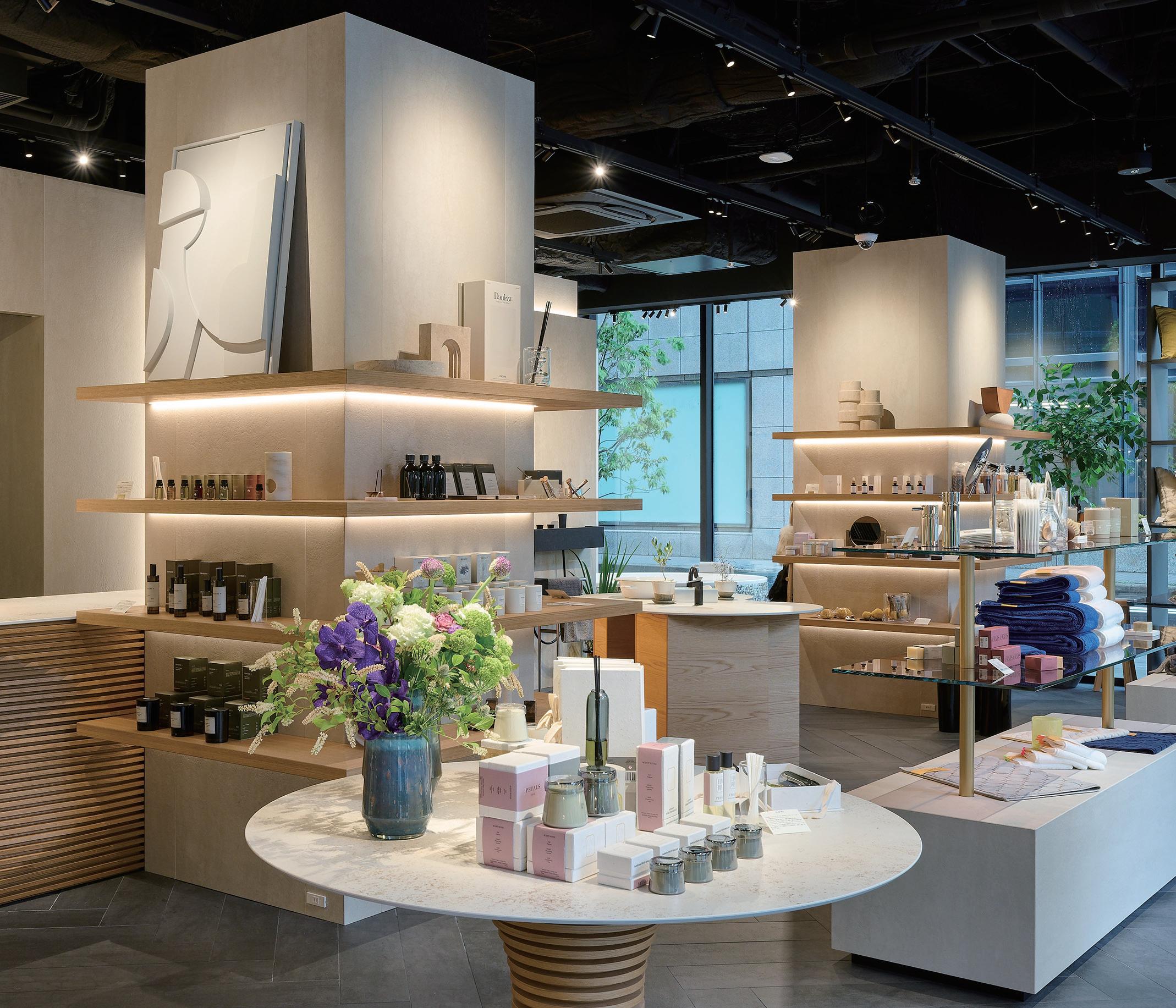 光の水平ラインが生まれ 陳列物を照らすだけでなく 通行人へのアピールも