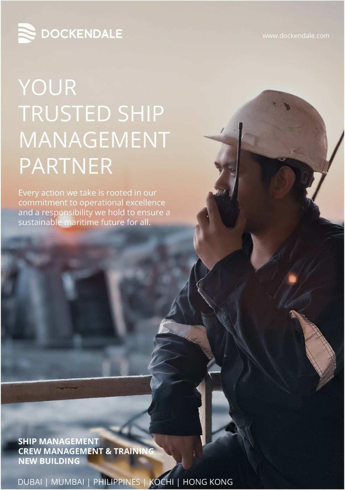 Setting the scene for the endless possibilities a昀昀orded by AI adoption, Vikrant Gusain, the CEO of Dubai-based Dockendale Ship Management, muses, “Imagine a ship where ChatGPT becomes a virtual crewmember, continuously analysing vast datasets, weather patterns, tra昀케c patterns, and navigational hazards. This AI companion not only