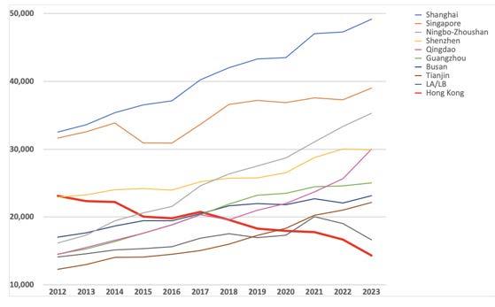 The 2024 Leading Maritime Cities (LMC) report from DNV and Menon Economics published in April saw Hong Kong fall to 12th place on the list of the top 50 shipping hubs around the world. As recently as 2019, it ranked in fourth place.