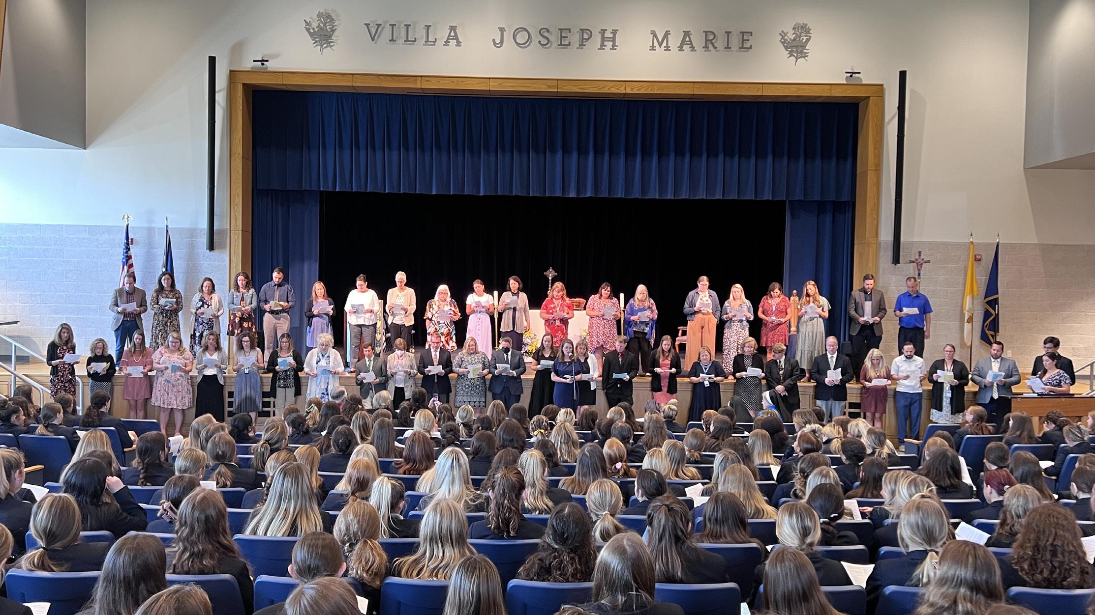 After the Mass, Jeanne Frawley, a 1994 Villa graduate, was installed as the school's new President, the faculty and staff were commissioned for the new school year, and the entire student body was blessed by the Sisters, faculty, and staff.