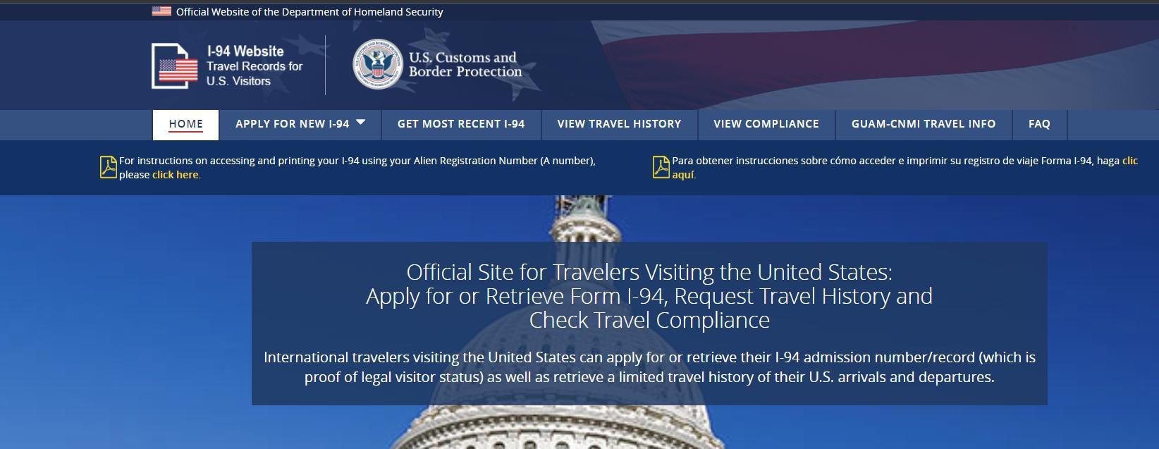 Step 1: Go to the following website: https://i94.cbp.dhs.gov/