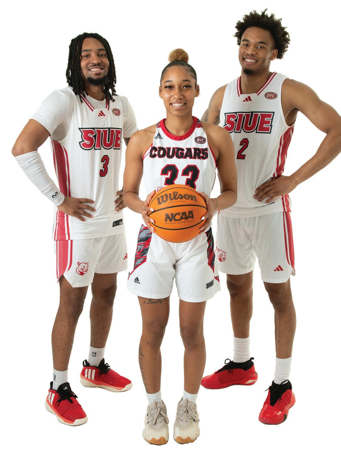 Women’s basketball student-athlete KK Rodriguez, MSEd ’23, and men’s basketball student-athletes Desmond Polk, BS ’24, and Ray’Sean Taylor, BS ’24, chose to return to SIUE to finish their athletic careers as graduate students.