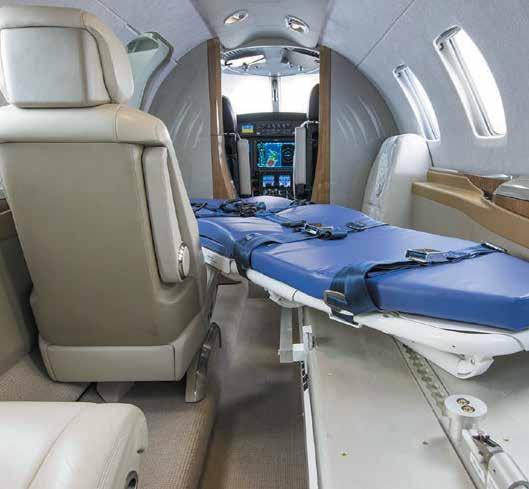 sible to a specialist trauma center. There fore, medical responders in a helicopter can provide both a higher level of care at the scene of a trauma and faster transport to a trauma center. They can also provide critical care when transporting patients from community hospitals to trauma centers. An air ambulance is a specially outfitted helicopter or fixed-wing aircraft that transports injured or sick people in a medical emergency or over distances or terrain impractical for a conventional ground ambulance. Fixed-wing aircraft are also more often used to move patients over long distances and for repatriation from foreign countries. These and related opera tions are called aeromedical. In some cir cumstances, the same aircraft may be used to search for missing or wanted people.