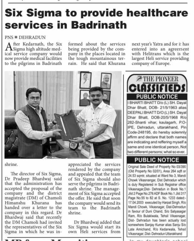 4- vki vius dk;ksaZ ds lkFk gkbZ ,sfYVV~;wM dk;ksaZ dk dSls çca/k djrs gSa\ MkW- iznhi Hkkj}kt% usiky esa 2015 vkbZ Hkh'k.k =klnh ds nkSjku ihfM+rksa ds ikl igqapus okyh lcls igyh Vhe flDl flXek gkbZ ,sfYVV~;wM Fkh] ftlus ogka ls ihfM+rksa dks lqjf{kr LFkkuksa ij igqapk;k FkkA ogha 2013 esa mÙkjk[kaM esa vkbZ Hkh"k.k ck<+ esa gtkjksa tksxksa dh tku cpkbZ FkhA flDl flXek gsyFkds;j fdlh Hkh ÅapkbZ ij dgha Hkh vkSj dHkh Hkh] fcuk fdlh ljdkjh lgk;rk vkSj nku ds cxSj vkink esa ihfM+r O;fä~;ksa dks fpfdRlk lsok,a çnku djrk gSA gekjs yksx mPp ÅapkbZ ds fj;y ghjks gSA 5- vki ldkjkRed n`f"Vdks.k vkSj yksxksa ds fy, dqN dj xqtjus ds fy, tkus tkrs gSaA MkW- iznhi Hkkj}kt% vHkh rd eSaus gkbZ ,sfYVV~;wM foinkvksa ls