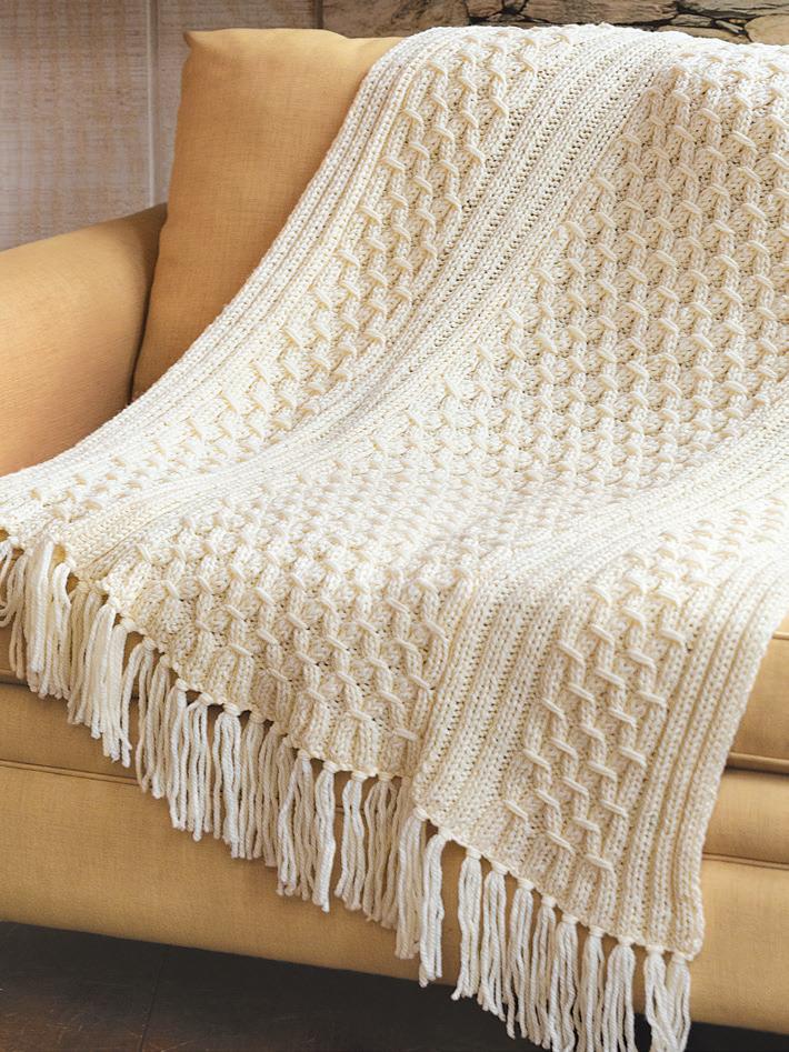 For simple patterns with simple repeats, like this blanket, adjust the final size by adding or removing stitch repeats (here, it is 18 stitches) and row repeats (here, it is 24 rows). Just make sure to buy plenty of yarn if going larger!