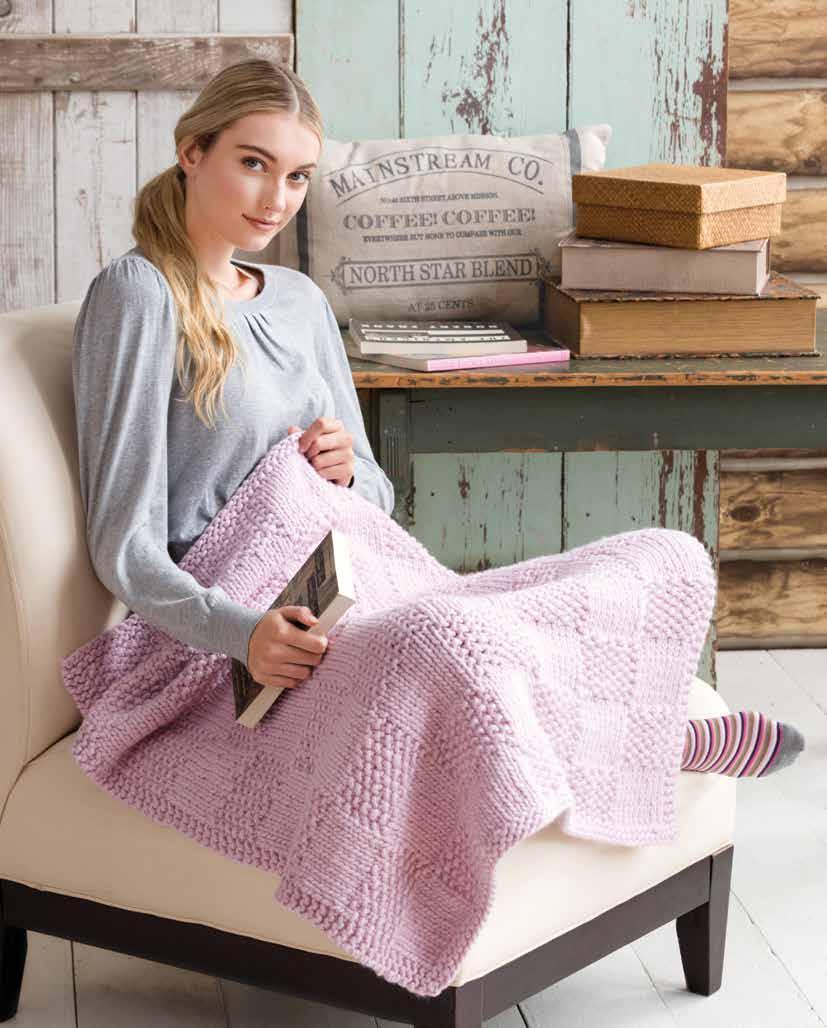Holding two strands together makes this blanket twice as fast to knit. Knit seven strips, seam them together, weave in your ends, and then enjoy this comfy blanket.