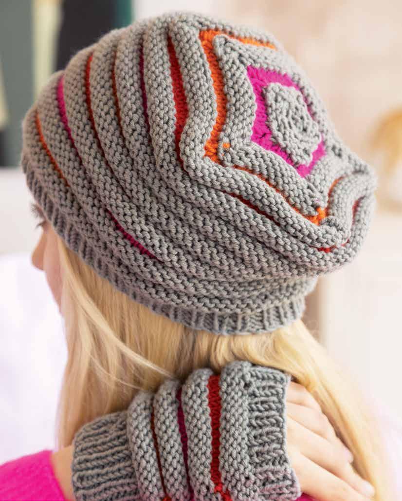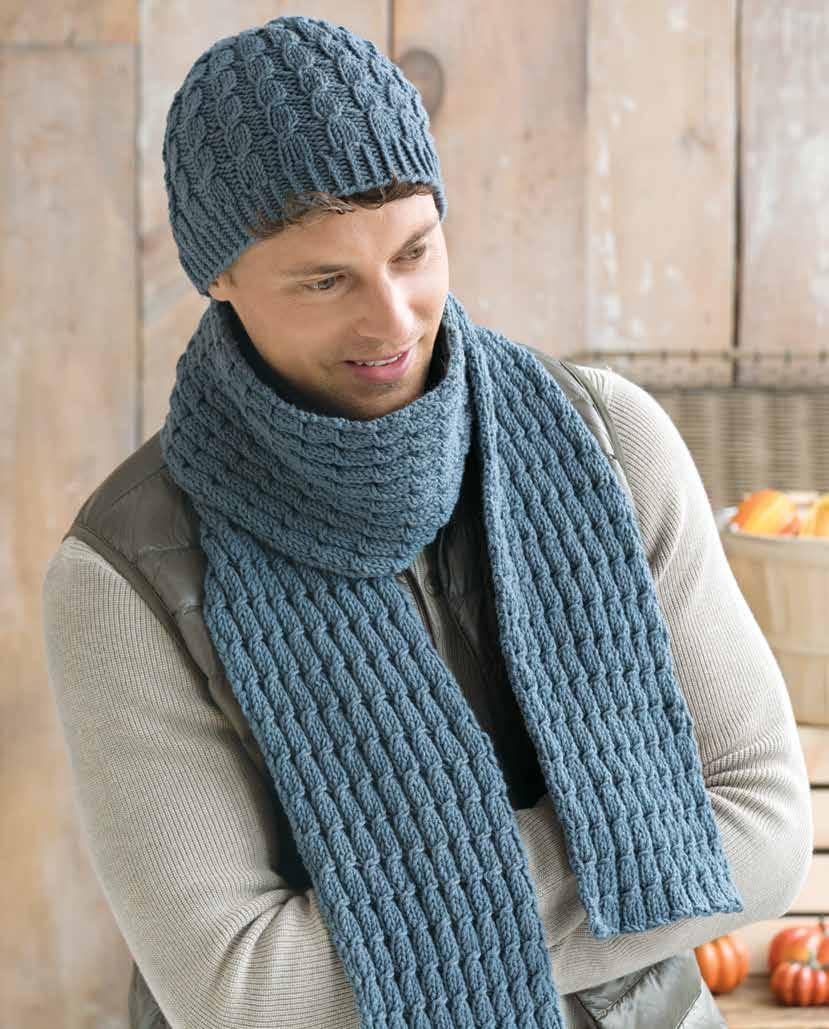 Working a pattern in rows will be different than working it in the round . This hat and scarf set is a prime example Take care to work the correct version of the stitch pattern for each item