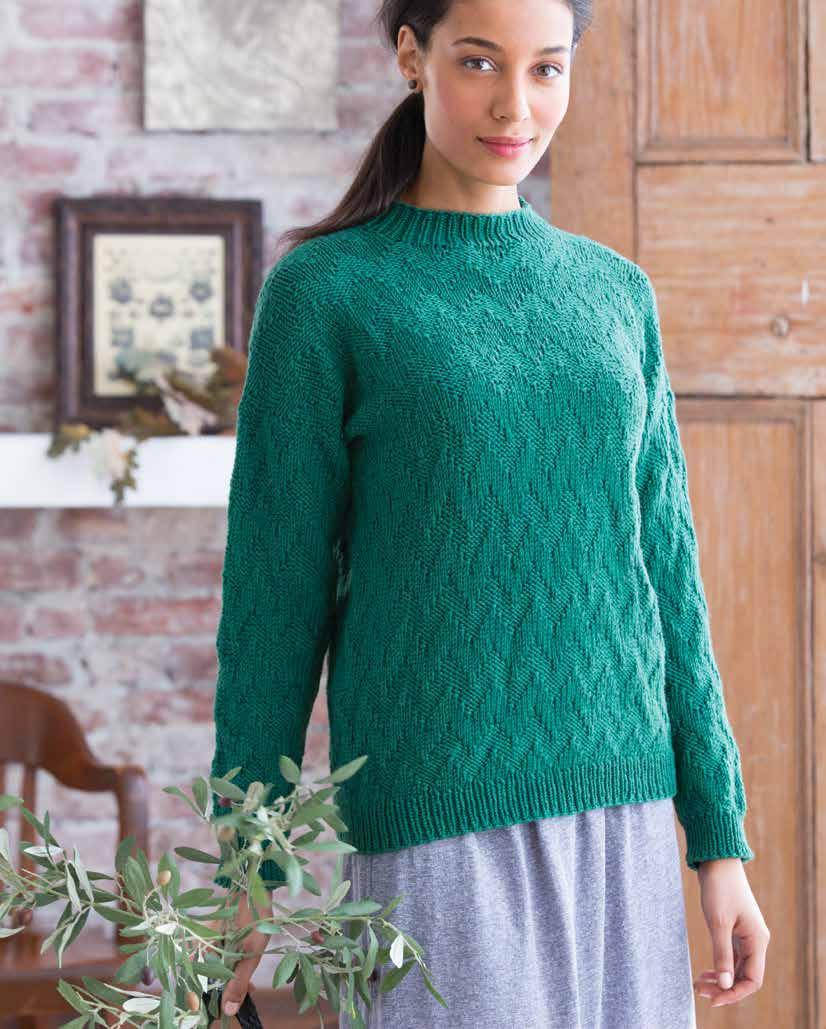 Knit and purl stitches create the textured chevron pattern in this top-down sweater.