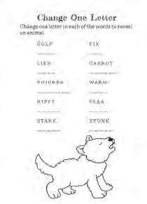 Change One Letter: WOLF, LION, CHICKEN, HIPPO, SHARK (or STORK), FOX, PARROT, WORM, FLEA, SKUNK