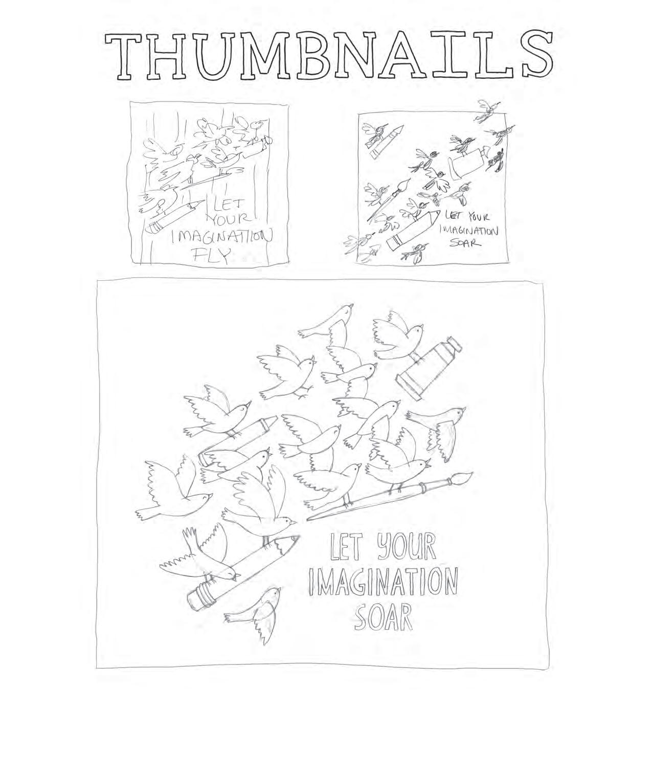 Thumbnails are very small, loose sketches that are helpful for planning your layout before you proceed to sketching your drawing. I keep a notebook of thumbnails of ideas for future pages.