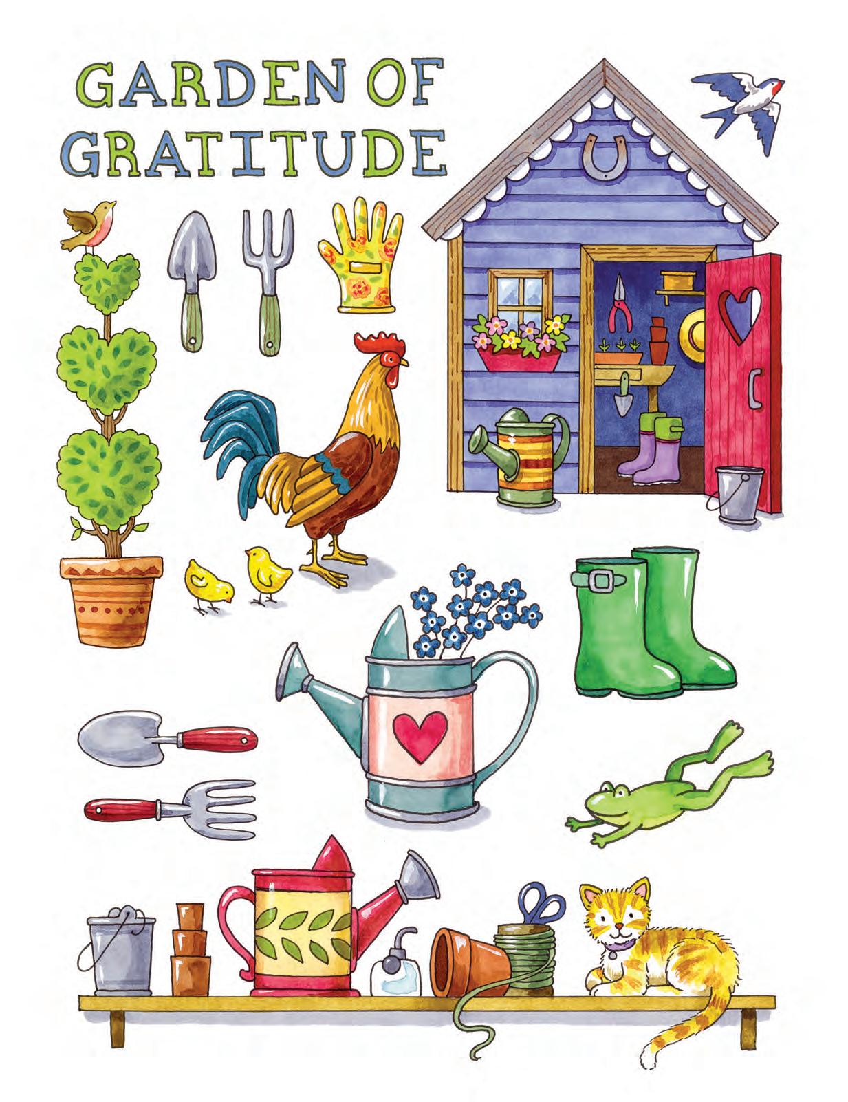 Adding lettering in the white spaces around your drawing may seem like an obvious solution, but consider placing the lettering within the drawing itself. The fence posts and plant pots here were a perfect choice for placing text.