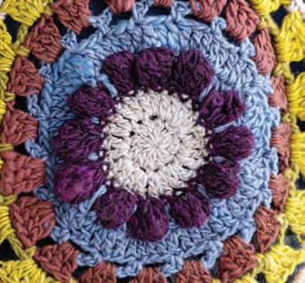 For each pillow, arranging colors as desired (with as much variation as possible), join a line of 6 motifs (for width) for a total of 12 rows of motifs (for length) as foll: use a split strand of yarn, join 2 sts of one petal to 2 sts of corresponding motif’s petal working into outside lps only of sts. Secure neatly on WS.