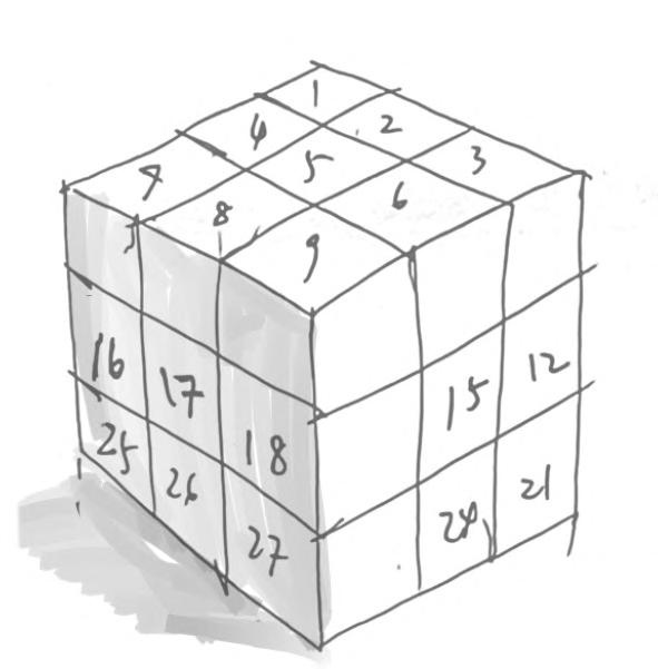 I finally designing a Rubik's Cube style maze.It consists of 27 rooms, each of which is numbered.(1-27) The right route to escape is 1-2-3-6-5-14-17-26-25-16-13-22-19-20
