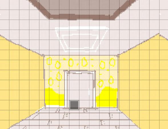 The maze created by duplicating the same unit makes it hard to spot [signs] because it looks the same in every corner. Initially, I created a maze by rotating a single unit to duplicate it, which is a traditional, common maze that relies on walls to mark out paths, but I wanted it to be more disorientating and interesting, and in combination with the game's plot where the protagonist arrives in several different rooms, it would be more interesting to incorporate paths into the rooms using a single room as the unit.
