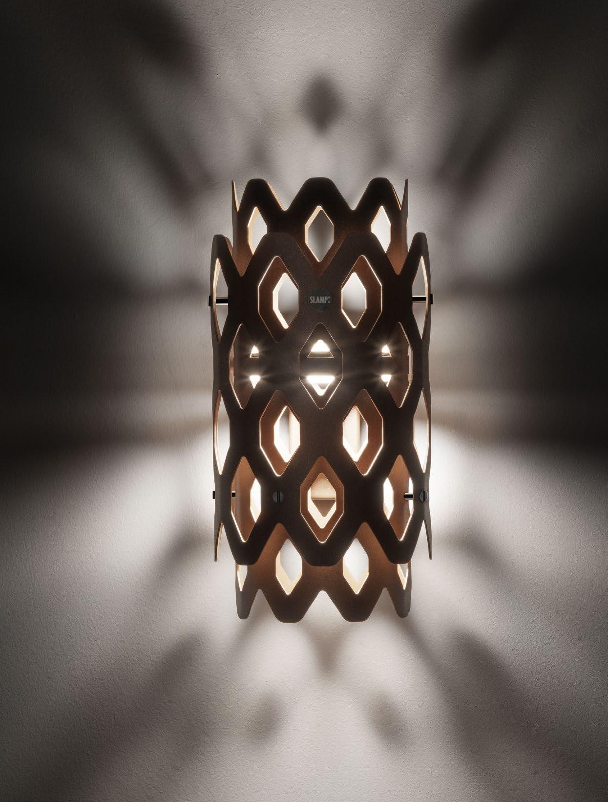 Lampade che mantengono intatto il DNA Slamp pur accogliendo materiali nuovi per l’azienda, grazie ad un’estetica riconoscibile, attenzione alla qualità ed un approccio unico alla lavorazione che mantiene incastri, tagli e piegature tipiche dei prodotti indoor di Slamp.