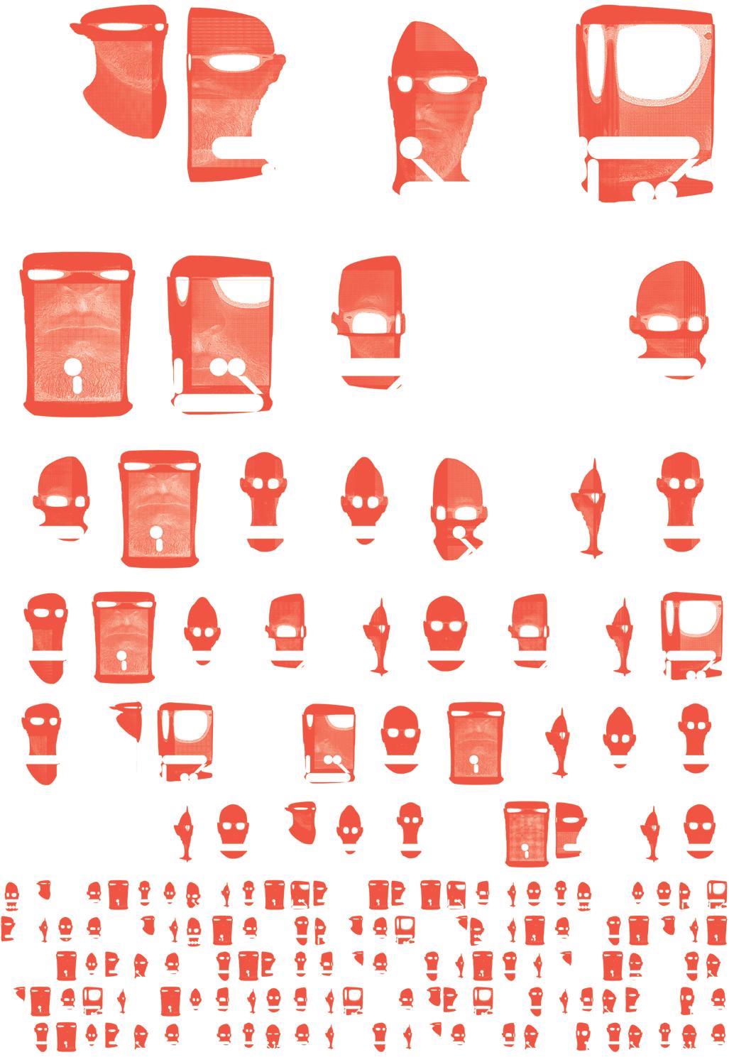 combinations, there arises a need to limit the free ordering of atom combinations within the framework of visibility that is compatible with the conventions of the Hebrew language. To this end, Franco established a bounding box for each letter included in the typeface, which is the precondition for its various appearances.