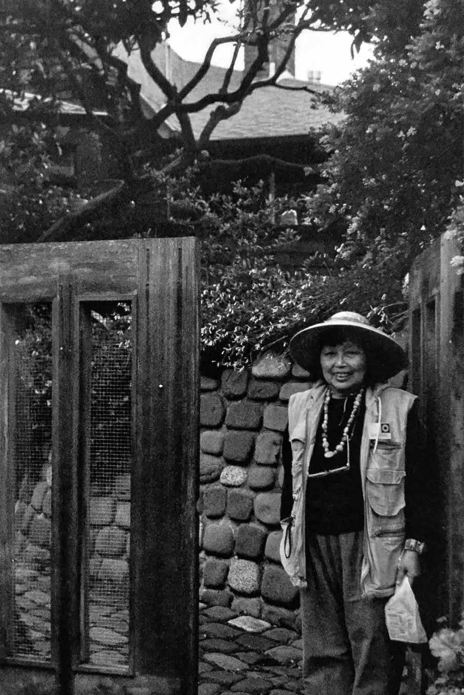 Ruth Asawa in front of her San Francisco home on the day of the reunion.