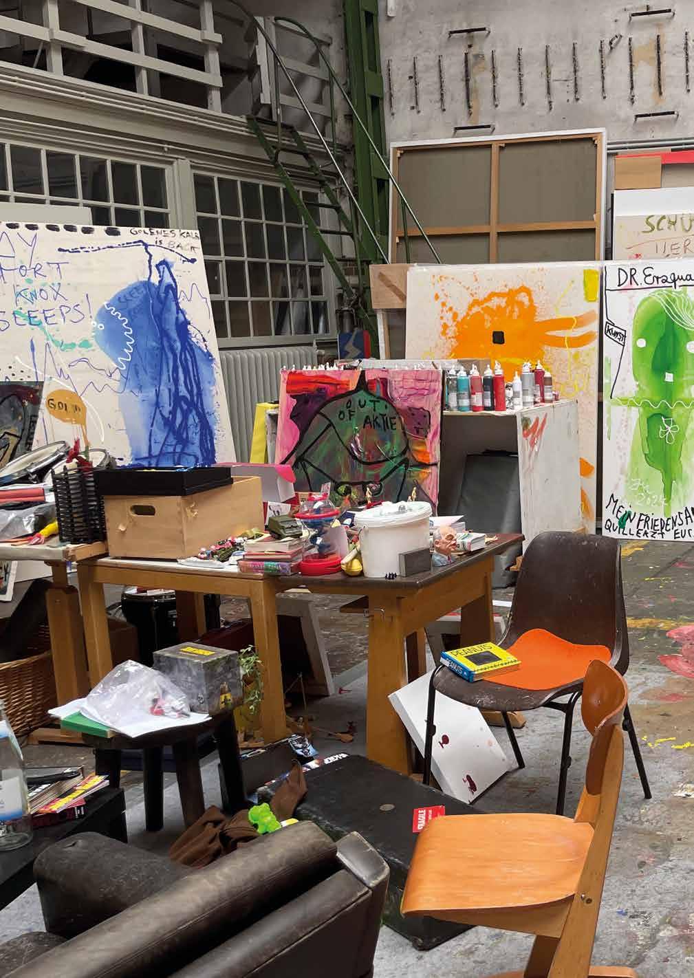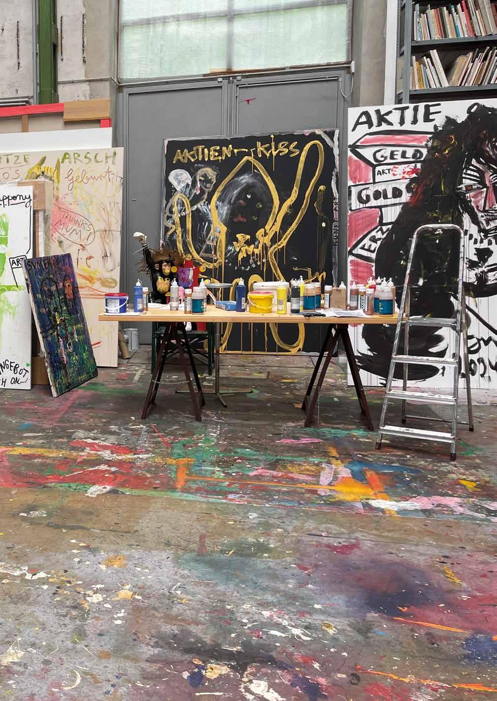 Left page: Studio of Jonathan Meese, photo by Jonathan Meese