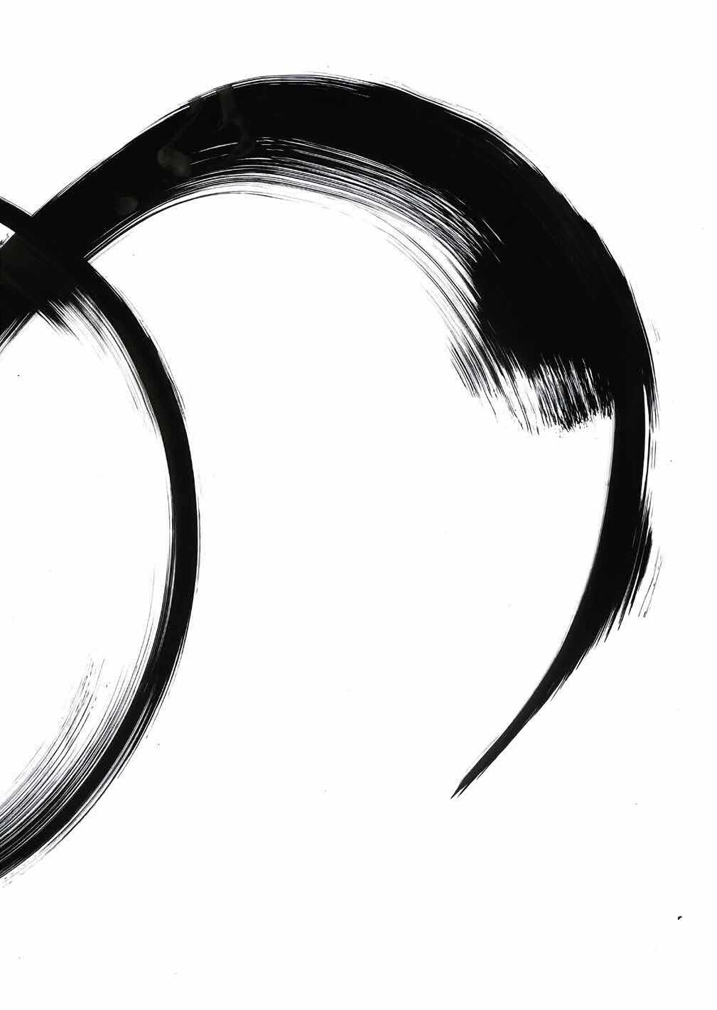then I watch the shape be drawn. As soon as the movement is finished, the glyph is finished. I never redo a glyph because you need to see my work as calligraphy. When you see calligraphy painters, they draw glyphs, they draw letters, they draw poems. If you take a Japanese calligrapher, he knows what he will do in advance. He knows, “Okay, I will draw this kanji or that one.” I follow more or less the same process. I have a Japanese calligraphy teacher who gave me some lessons. Calligraphy really has to do with breathing. It’s meditative. I follow this process when I’m practicing. I’m just myself on canvas or on paper. When I feel it, I just do the move at once in one breath and that’s over. One glyph alone doesn’t make sense. But when you take all the glyphs together, that’s when it makes sense. On my website you can see my vectorized forms. I draw a huge graphic system. That’s where the power lies, in the composition. It’s like a puzzle.