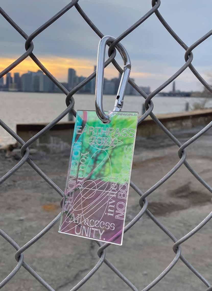 This luminescent keychain is made of laser-cut acrylic and reminds of official identity documents. Earthpass 20XX believes that no one should be excluded by its gender, race, ability, or anything other, and expects these values from its holders. NO GENDERS. NO BORDERS. As the world seems filled with horrific news every day, this seems like a far-away utopia of a speculative, yet hopeful future. The team of Earthpass 20XX donates its profits to Ukrainian Refugee Aid and Free Palestine. A project by Sibylle Hornung In collaboration with Typeworld.xyz.