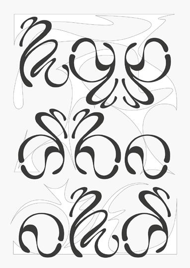 274——Xenia Wahl——DEU——RORSCHACH REGULAR Rorschach Regular is loud and as soon as one uses the font, a pattern appears for the eye which effect reminds of the psychological Rorschach procedure. Similar according to that the single letters mixed together are mirroring or even completing themselves, so one might recognize a whole new picture in it depending on the order of the letters.