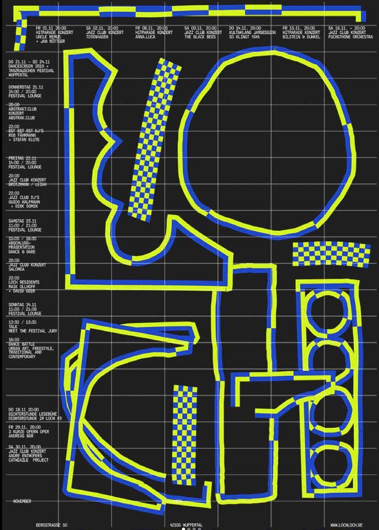 “We’ve developed a new concept ensuring LOCH to stand out more, but also assuring ourselves of crazy creative freedom to experiment and explore. The logo was already there, which is based on the building that LOCH resides in. In that exact shape you will find a bunch of tiny windows, so we wanted to give the poster the same level of LOCHness by implementing that same grid.”