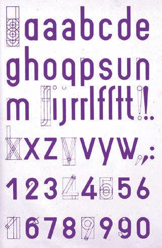 is visible, meaning that the results will always contain the tools for creating the alpha bet (its units). This assignment framework was used by Bauhaus tutors such as Joost Schmidt, an instructor of typography who taught foundation courses and was known for designing incredibly succinct assignments. Joost Schmidt’s alphabets are diagrams that demonstrate how each letter was formed. Its effectiveness as a prompt can be seen in the responses by his students, such as Reinhold Rossig, whose drawings offer a drawn alphabet created with his version of the grid.