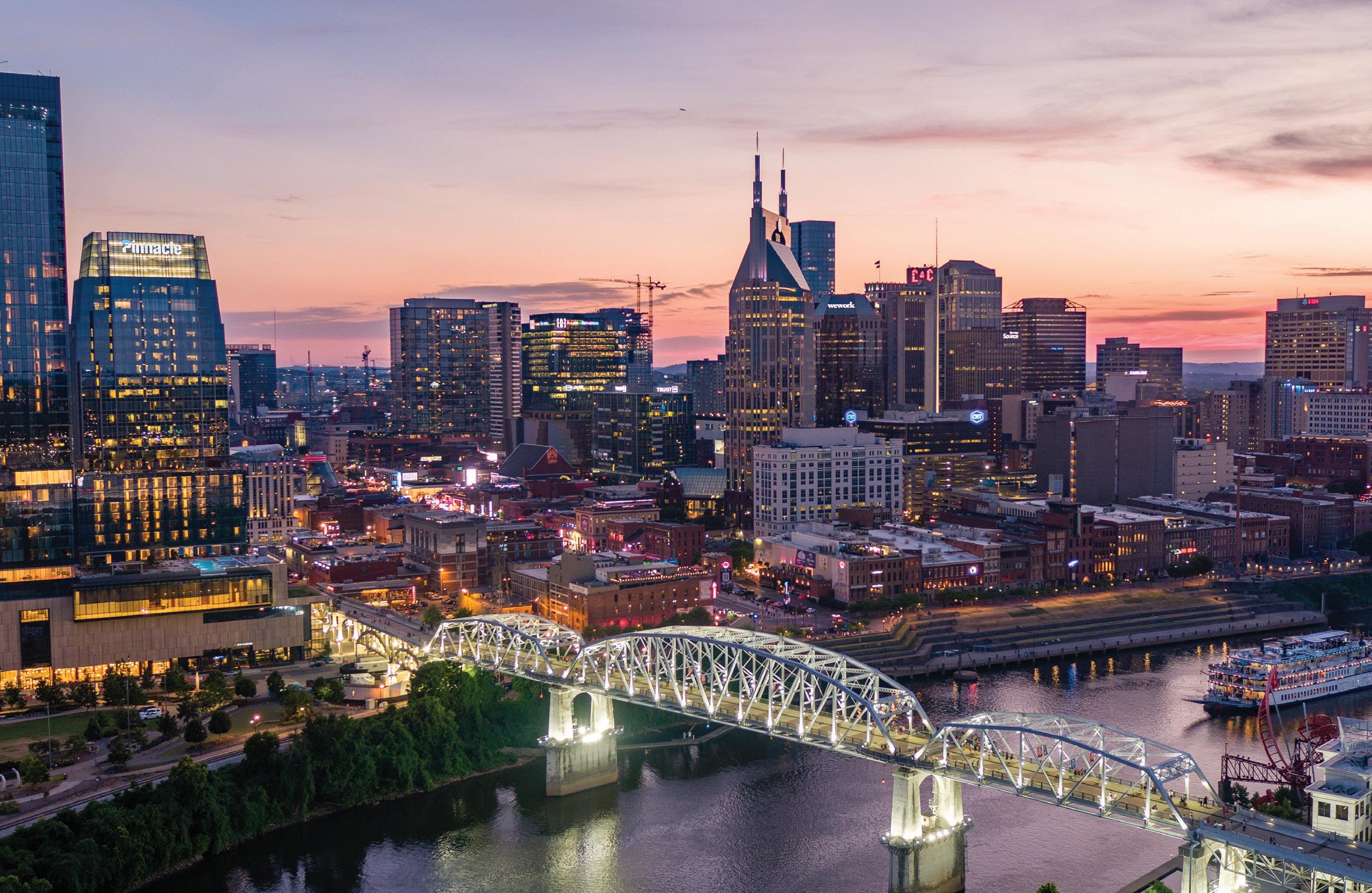 The Four Seasons hotel in downtown Nashville serves stunning skyline and river views.