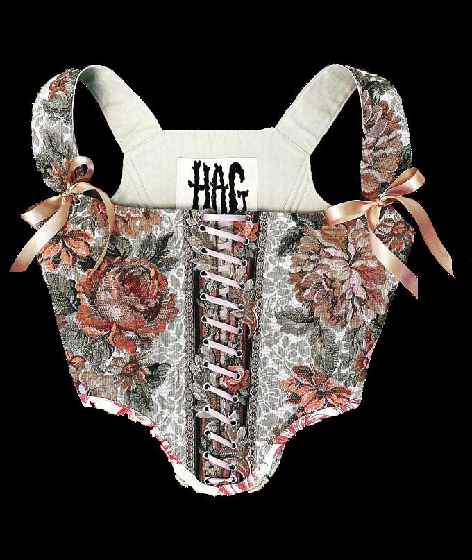 For quality control, the cotton lining, boning and hardware in all of my stays are purchased new. The outside is composed of sourced materials like tablecloths and bedsheets that I find at thrift stores around the city. I find unique linens that should be remembered and restored but are on the verge of being thrown away. I have only lived in OKC five years, but it makes me feel connected to the community and to those who lived here before. Making new things out of them honors our ancestors and our future by preserving what we have, and [ensuring] that the time we spent on something matters.