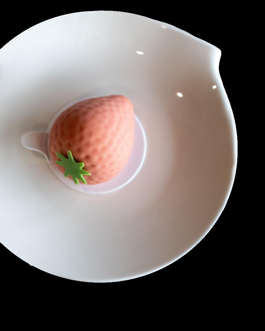 L'Arc Patisserie's Strawberry Petite Dessert. Chocolate shell, strawberry mousse, Jaconde sponge, strawberry pureé, strawberry cubes. Photo by Rachel Maucieri.