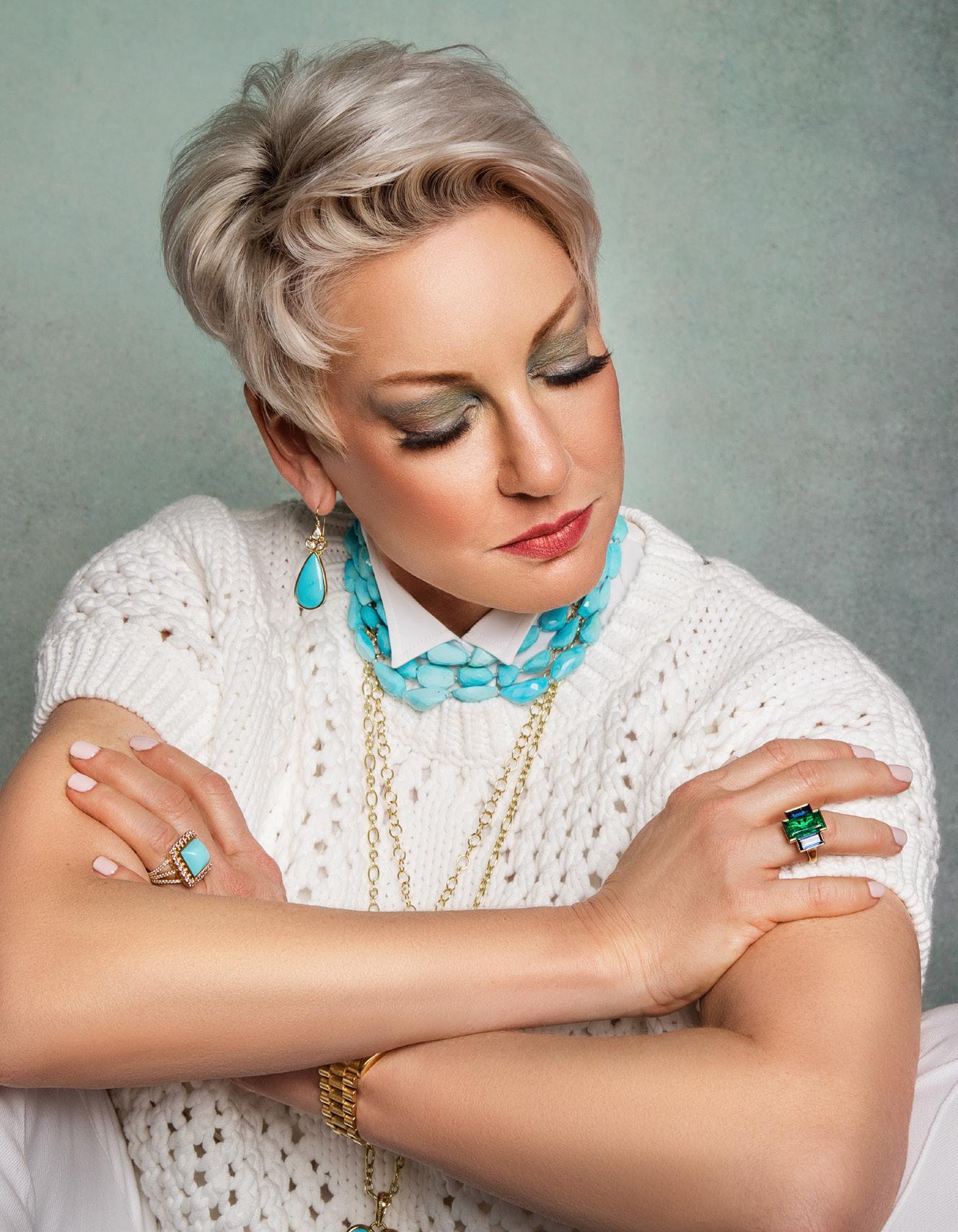 1. Amambaih, Julia Riding Boot: Betsy King Shoes 2. Meira T, Opal Necklace: Naifeh Fine Jewelry 3. Ippolita, Flower Disc Ring: BC Clark 4. Eleven Six, Rainbow Sweater: Gretta Sloane