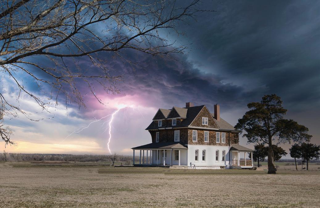 states, it is our gigantic thunderstorms (just look at our NBA team’s name). They’ve been very much on display during this particularly stormy and moody summer we have been experiencing. My husband, born and raised in Los Angeles before moving here, routinely watches storms on our patio in awe. The wide fl at plains and ominous clouds invite the daring to observe, as seen in this incredibly captivating, one-in-a-million cover image by “lightning chaser” Skeeter Arnold.