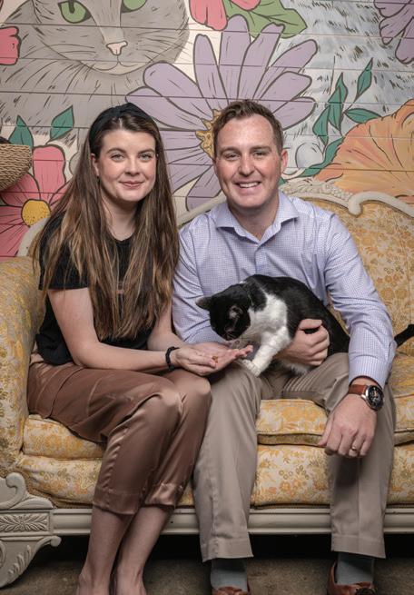 Prior to opening Don’t Stress Meowt, owners Michaela and Adam Fitzpatrick had longed to visit a cat cafe themselves. A licensed clinical social worker and a mechanical engineer, respectively, the couple planned a trip to Japan in late 2021 but changed plans due to the pandemic. “We ended up going to Miami and found a cafe there,” Michaela Fitzpatrick said. “After some research, we discovered that cafes were in almost every other state but Oklahoma.” Since then, Michaela envisioned the ideal cat cafe while Adam diligently worked on the design phase.