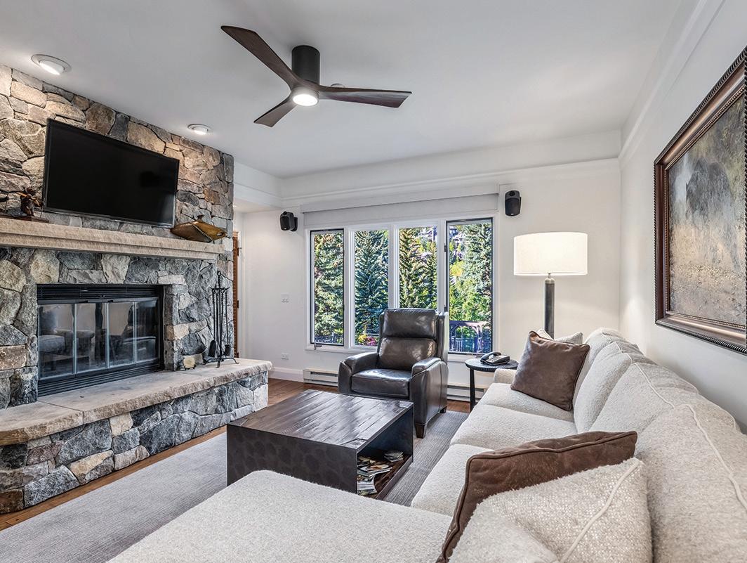 Immerse yourself in the sounds of Aspen trees while taking in breathtaking views of Vail Mountain from this spacious, remodeled threebedroom condo. The remodel features wonderful natural light, white oak floors, new carpet, custom cabinetry, updated kitchen appliances and countertops, updated metalwork on the stairs and fully renovated bathrooms.