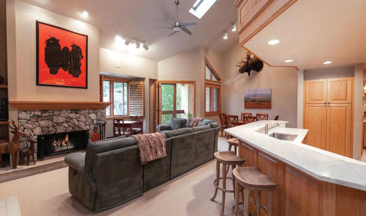 Conveniently located 205 steps from the TOV bus stop and walking distance to Vail Mountain School, this twostory 4-bedroom, 3.5-bath single-family home sits on a sunny south-facing 0.4-acre private lot. Enjoy mountain views, privacy, and the home’s open floor plan that includes two primary bedrooms, dens and fireplaces, a woodburning stove and an exterior hot tub. 2805