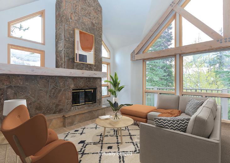 This light-filled end unit in peaceful Wren House has stunning mountain views from a wraparound deck. Fully furnished, wellmaintained, and ready to enjoy. Near the Vail bus stop, with plenty of storage. Short-term rentals allowed. Ideal as a getaway or investment. Loft serves as second bedroom.