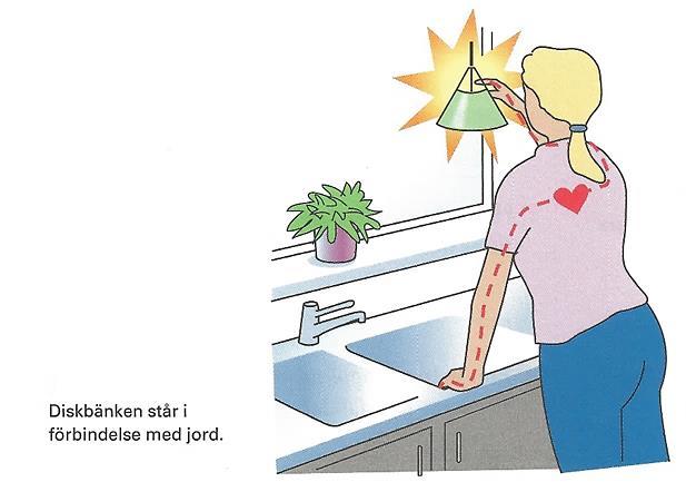 Om en person av någon orsak samtidigt kommer i kontakt med elnätets fasspänning på 230 V och jord, flyter det ström genom personen, precis som genom vilken annan belastning som helst.