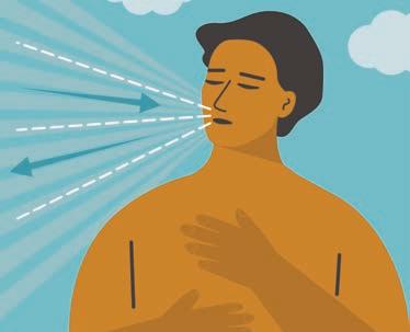 THE AVERAGE PERSON TAKES ALMOST 22,000 BREATHS each day, but most of us don’t breathe properly. This can become a serious issue for people living with cancer and other chronic FRQGLWLRQVZKRKDYHGLIƓFXOW\EUHDWKLQJ7KHPHGLFDOQDPHIRU this scary experience is dyspnea. Its causes vary and include the effects of cancer and certain treatments, fatigue, anxiety and other health issues, so it’s important to check with your health care team if you struggle with dyspnea. Fortunately, in many cases, basic breathing exercises can help. They can reduce stress, shift your focus away from pain, boost lung capacity and improve overall wellness. The four techniques below are often UHFRPPHQGHGIRUEUHDWKLQJHDVLHUDQGPRUHHIƓFLHQWO\7KH\FDQEHSHUIRUPHGWKURXJKRXWWKHGD\ and require no special equipment. Give them a try, and soon you’ll say bye-bye to breathlessness.