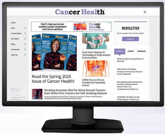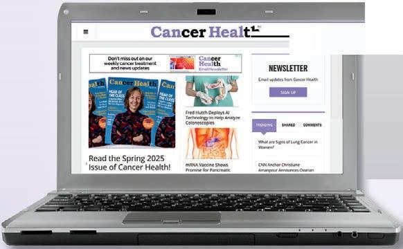I recommend our website CookForYourLife.org for healthy recipe ideas and for dietitianapproved information on cancer and nutrition. We send out a newsletter every two weeks, and people can follow us on our social media too. [Editor’s note: CancerHealth.com highlights one of their recipes each Friday.]