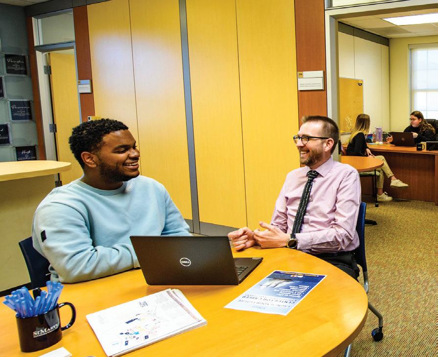 Creemos que el mejor aprendizaje surge del rico intercambio humano entre el estudiante y el profesor. Este intercambio tiene lugar en nuestras pequeñas clases, que son a la vez desafiantes y atractivas, en interacciones individuales e incluso en los senderos que cruzan el campus. Esto promueve el aprendizaje a un nivel personalizado que es característico de St. Mary’s College. Cada día, nuestros profesores, entrenadores, asesores y personal desempeñarán un papel personal en tu carrera universitaria.