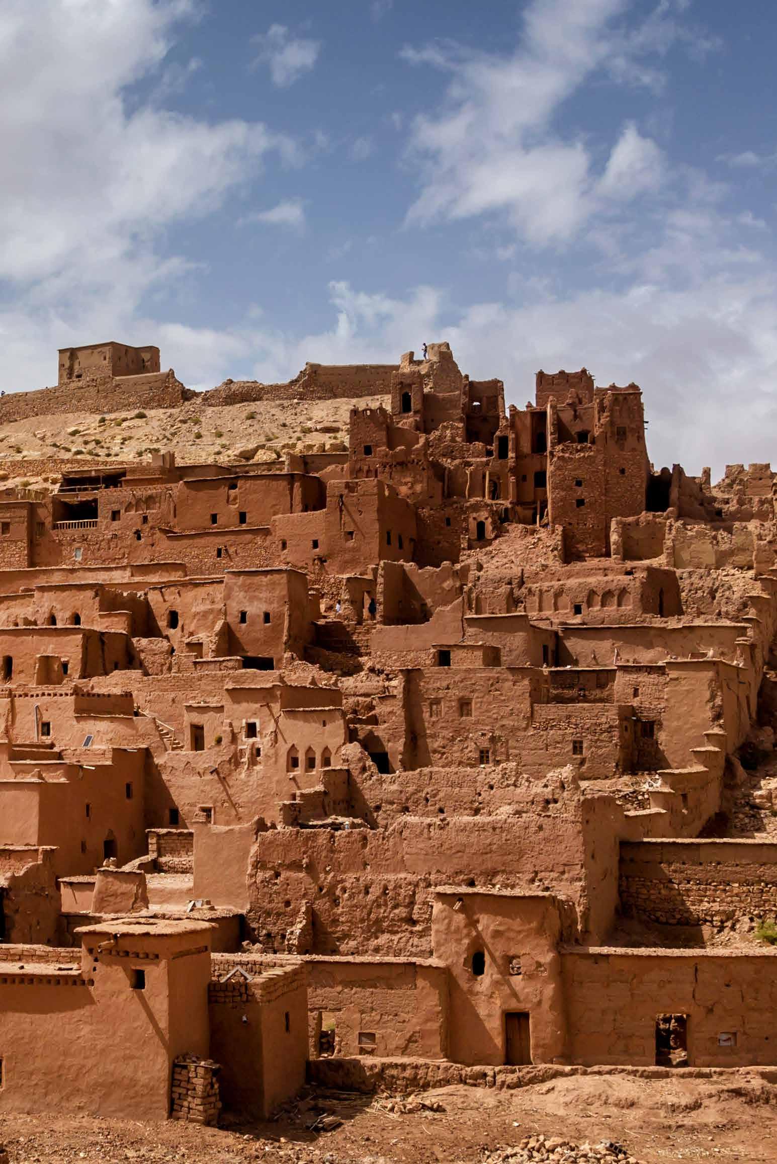 Today, head north to Rabat, Morocco’s serene coastal capital. Explore its regal past with visits to the Hassan Tower and the Mausoleum of Mohammed V, flanked by royal guards. Stroll through the whiteand-blue Kasbah of the Udayas, take in the breezes along the Bouregreg River, or wander the peaceful Andalusian Gardens. Overnight in Rabat.